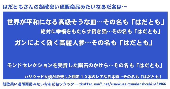 | 意味不明あだ名 | 『自称はだとも』『はだともフォーエバー』 |