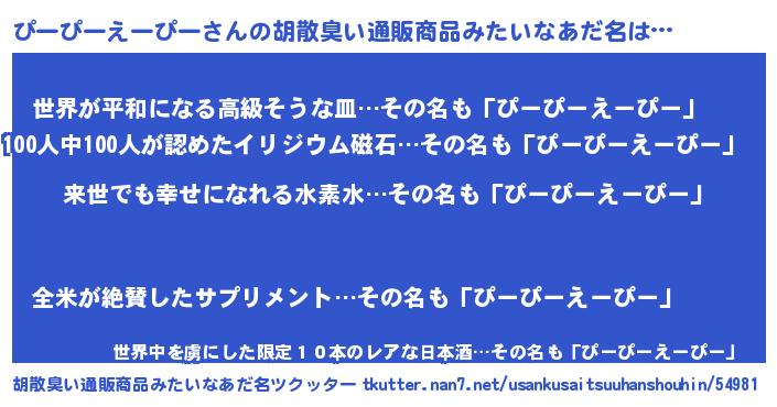 | 意味不明あだ名 | 『永久保存ぴーぴーえーぴー』 |