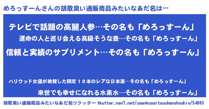 | ヘコむあだ名 | 『めろお』『めろっすーん(笑)』 |
