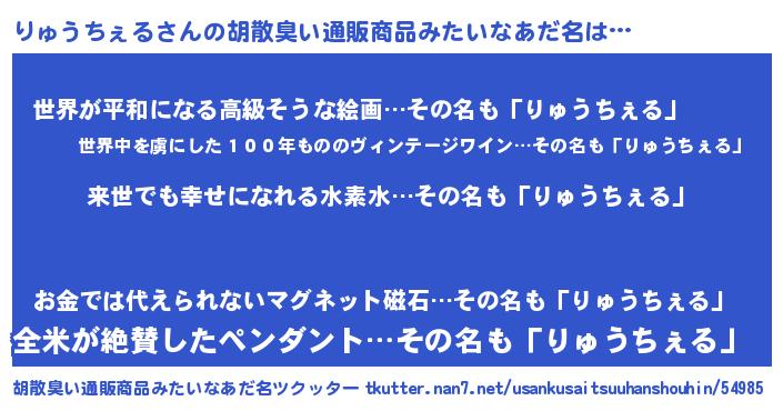 | 意味不明あだ名 | 『永久保存りゅうちぇる』 |