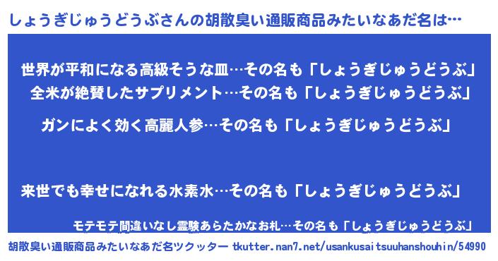 | 意味不明あだ名 | 『自称しょうぎじゅうどうぶ』 |
