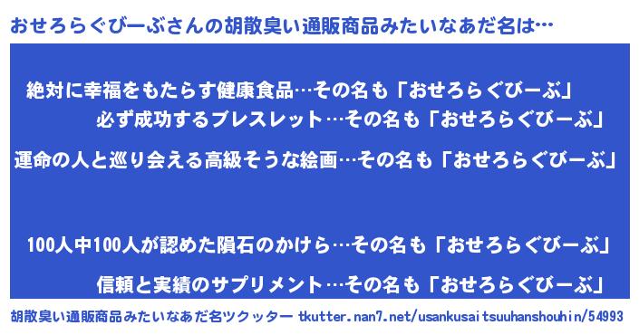 | 意味不明あだ名 | 『おせろらぐびーぶフォーエバー』 |