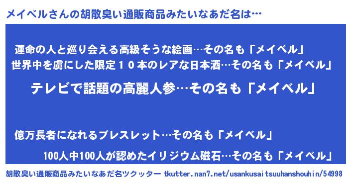 | 男性向けラノベタイトル風あだ名 | 『転生したらメイベルだった件』 |