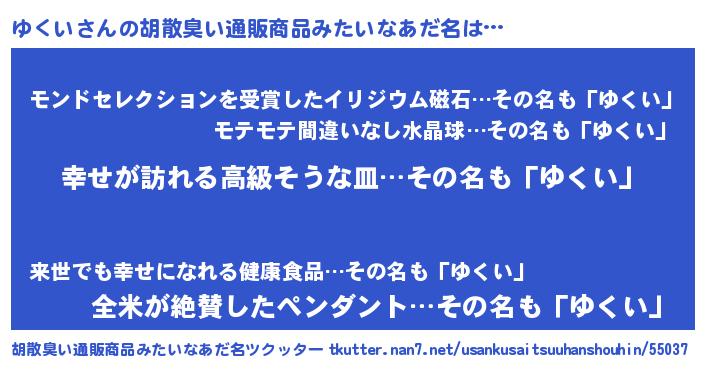 | 意味不明あだ名 | 『ゆくいフォーエバー』『ペロリンゆくい』 |