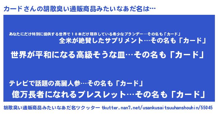 | 意味不明あだ名 | 『なめこ科カード属』『ペロリンカード』 |