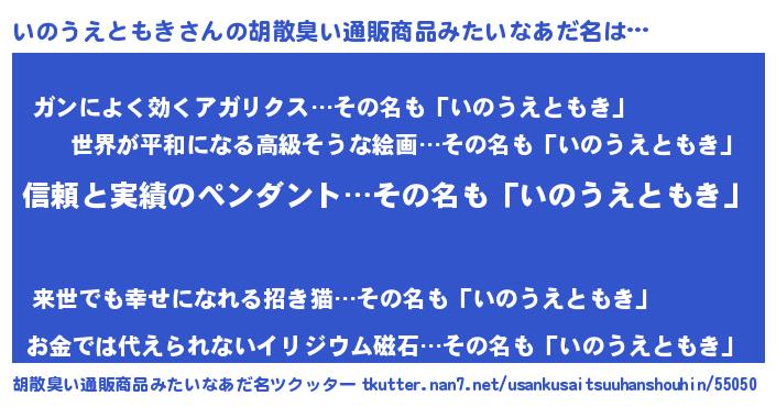 | 意味不明あだ名 | 『とにかく怪しいいのうえともき』 |