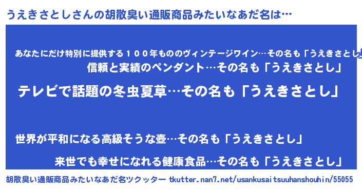 | 意味不明あだ名 | 『自称うえきさとし』 |
