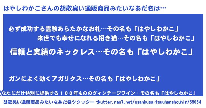 | 意味不明あだ名 | 『とにかく怪しいはやしわかこ』 |