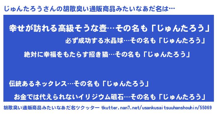 | ヘコむあだ名 | 『じゅんたろう(笑)』『つくし』 |