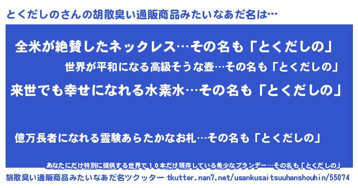 | ヘコむあだ名 | 『とくだしの(苦笑)』『とくっぺ』 |