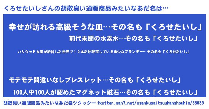 | 欧米人風あだ名 | 『ダレノガレくろせたいし』 |