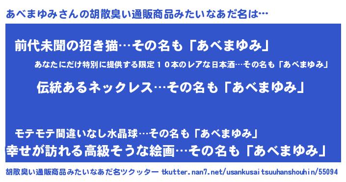 | 意味不明あだ名 | 『とにかく怪しいあべまゆみ』 |