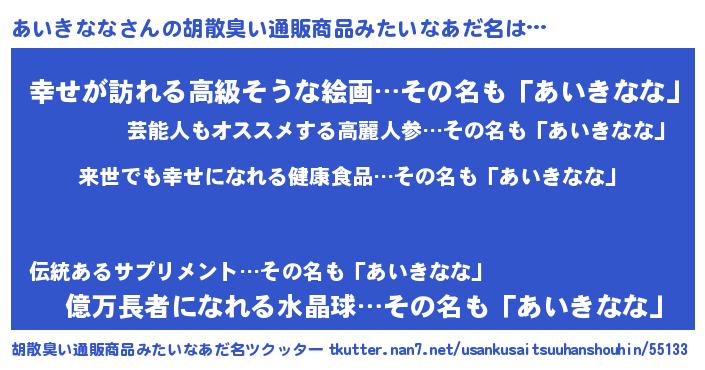 | ヘコむあだ名 | 『あいきなな(爆)』『牛乳』 |