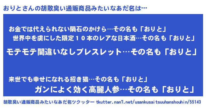 | 欧米人風あだ名 | 『マイケルおりと』『ダニエルおりと』 |