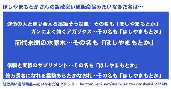 | 意味不明あだ名 | 『永久保存ほしやまもとか』 |