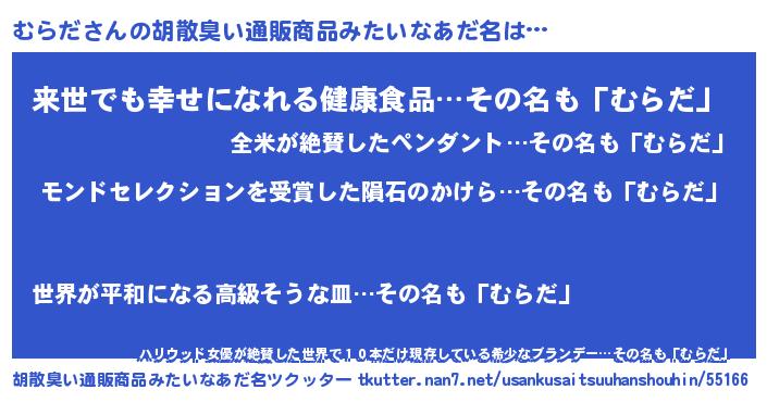 | ヘコむあだ名 | 『むらだ(苦笑)』『むら太郎』 |