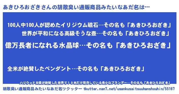 | ヘコむあだ名 | 『あきもー』『牛乳』『あきを』 |