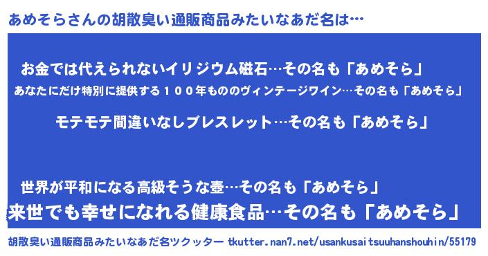 | 意味不明あだ名 | 『ペロリンあめそら』『永久保存あめそら』 |