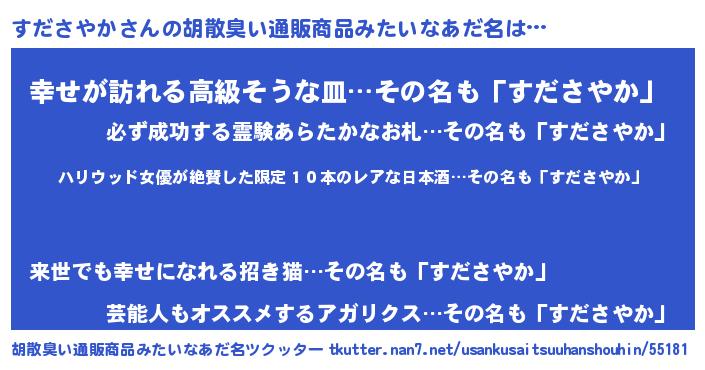| 意味不明あだ名 | 『住所不定無職すださやか(40歳)』 |