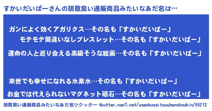 | 欧米人風あだ名 | 『すかいだいばークリステル』 |