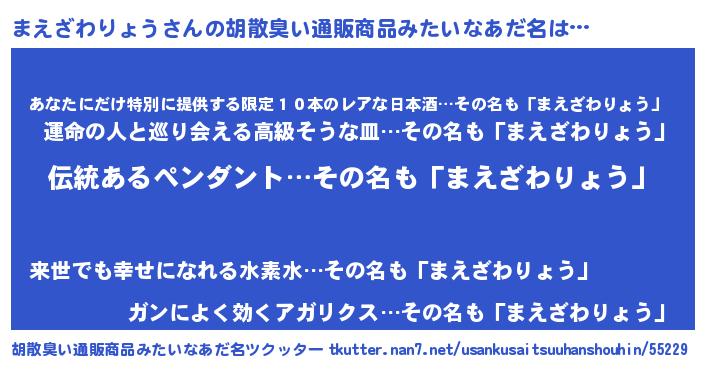 | 男性向けラノベタイトル風あだ名 | 『ダンジョンにまえざわりょうを求めるのは間違っているだろうか』 |