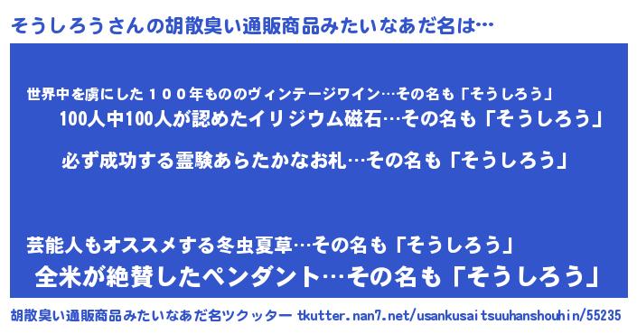 | 意味不明あだ名 | 『ペロリンそうしろう』『自称そうしろう』 |