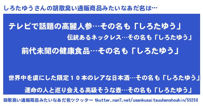 | ヘコむあだ名 | 『しろたゆう(笑)』『なまこ酢』 |
