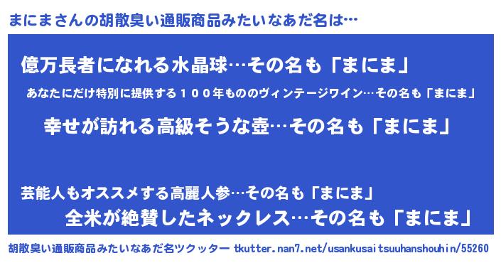 | 恥ずかしいあだ名 | 『まにっちょ』『プリティーまにま』 |