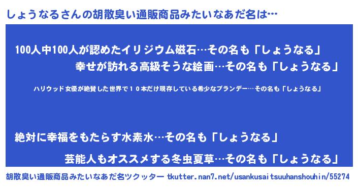 | ヒーロー風カッコイイあだ名 | 『仮面ショダー』『慈愛の使者しょうなる』 |