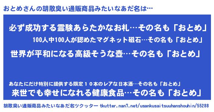| ヘコむあだ名 | 『なまこ酢』『おとっふぃ~』 |