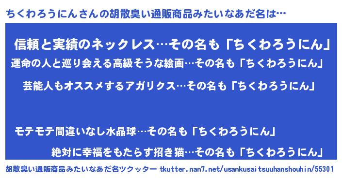 | 意味不明あだ名 | 『自称ちくわろうにん』 |