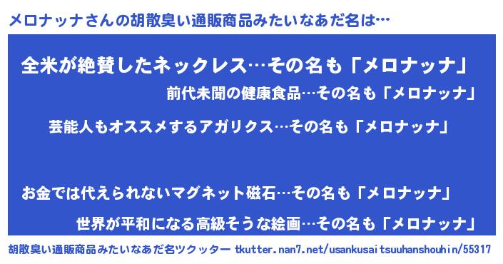 | 意味不明あだ名 | 『自称メロナッナ』『永久保存メロナッナ』 |