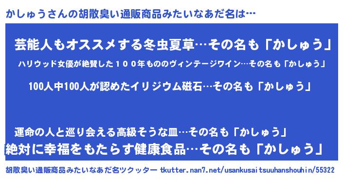 | ヒーロー風カッコイイあだ名 | 『友情の使者かしゅう』『ネオカシュウ』 |