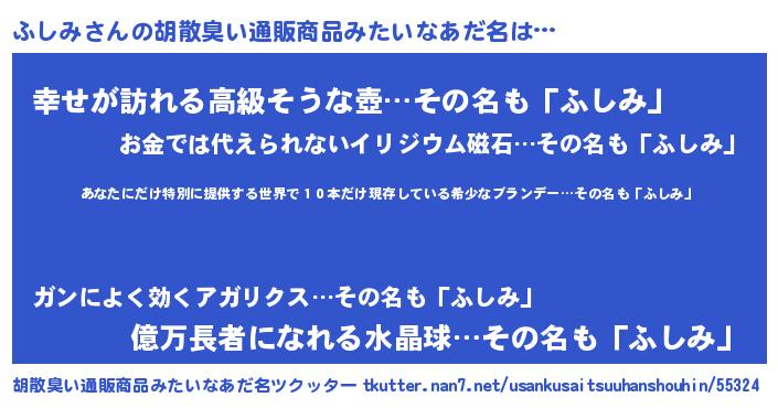 | 男性向けラノベタイトル風あだ名 | 『この素晴らしい世界にふしみを!』 |