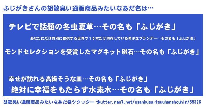| ヘコむあだ名 | 『ふじがき(笑)』『レバニラ』 |