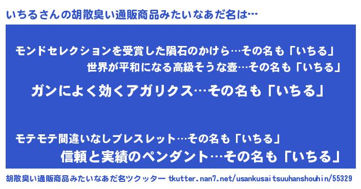 | 恥ずかしいあだ名 | 『イチルデラックス』『イチリンリン』 |