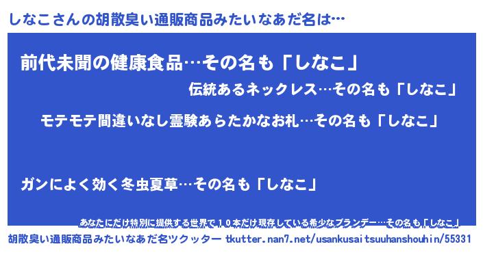 | 意味不明あだ名 | 『ペロリンしなこ』『永久保存しなこ』 |