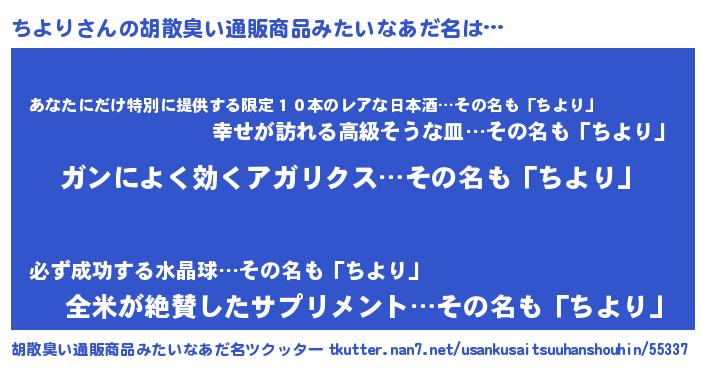 | 意味不明あだ名 | 『自称ちより』『住所不定無職ちより(13歳)』 |