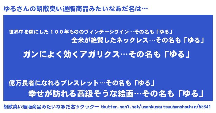 意味不明あだ名 | 『自称ゆる』『住所不定無職ゆる(9歳)』 |