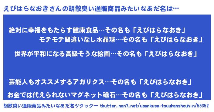 | ヘコむあだ名 | 『なまこ酢』『えびはらなおき(爆)』 |