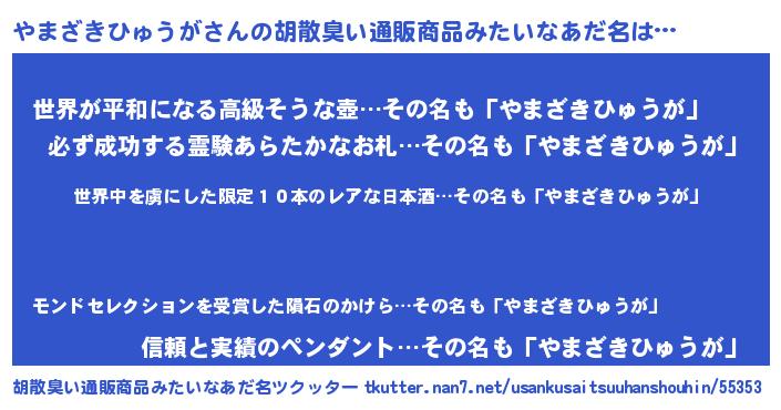 | 意味不明あだ名 | 『住所不定無職やまざきひゅうが(47歳)』 |