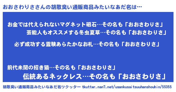| 伝説のあだ名 | 『伝説のスナイパーおおさわりさ』 |