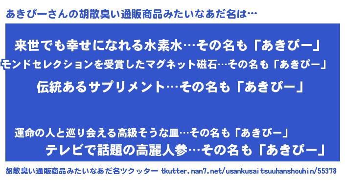 | ヘコむあだ名 | 『あき太郎』『あきぴー(苦笑)』 |