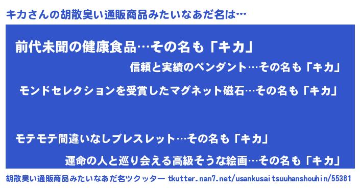 | ヘコむあだ名 | 『キカ(小並感)』『酢こんぶ』 |