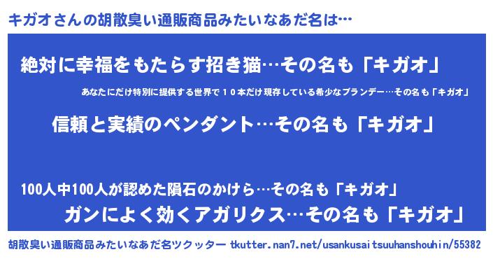 | 意味不明あだ名 | 『とにかく怪しいキガオ』『自称キガオ』 |