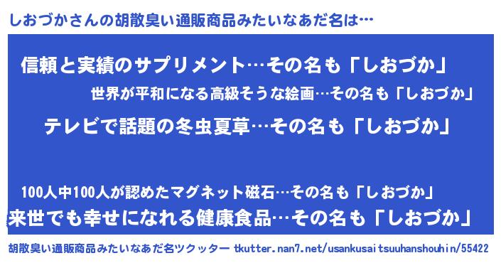 | 意味不明あだ名 | 『自称しおづか』『永久保存しおづか』 |