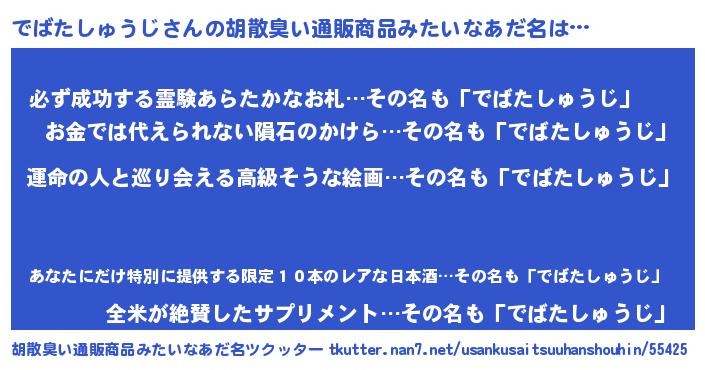 | ヘコむあだ名 | 『酢こんぶ』『でばにー』『でばを』 |