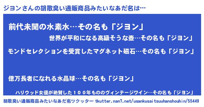 | 欧米人風あだ名 | 『ジヨン・ステッグマイヤー』 |