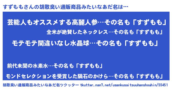 | 男性向けラノベタイトル風あだ名 | 『転生したらすずももだった件』 |