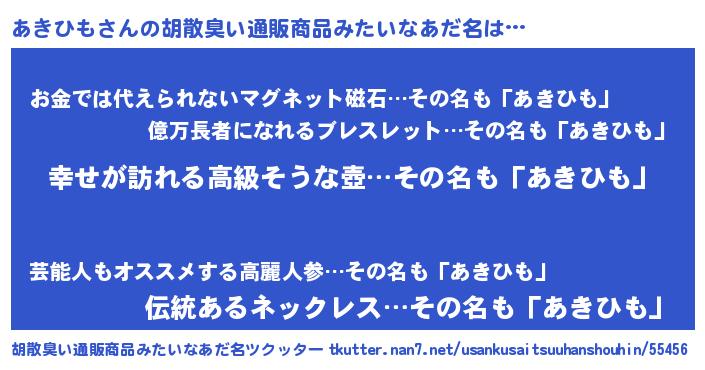 | ヘコむあだ名 | 『牛乳』『あきぷりん』『あきもー』 |